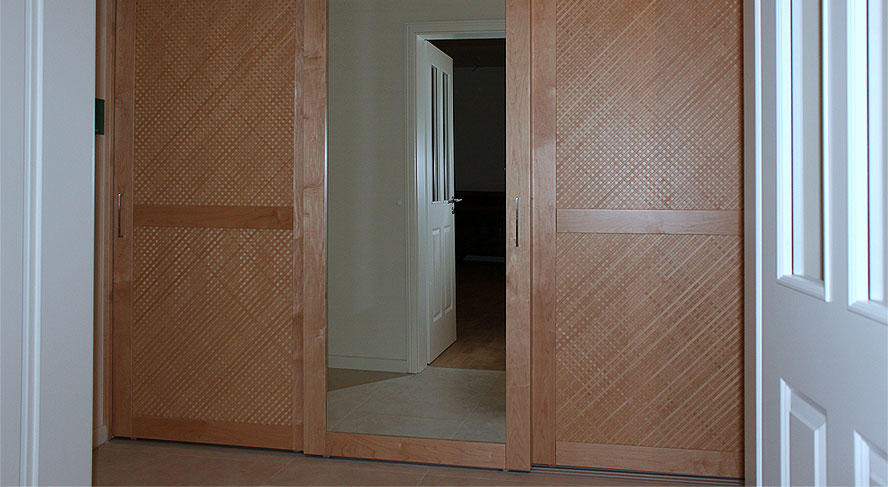 - Arbeit in Ahorn-Furnier mit massiven Ahorn-Geflecht Türen